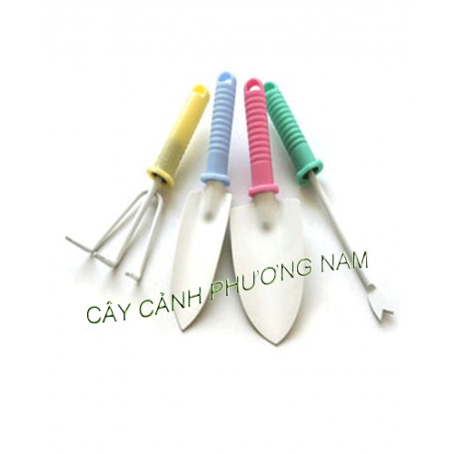Bộ sản phẩm bao gồm: 01 cào ba răng, 02 xẻng cán ngắn bảng to, 01 cây xới đất.