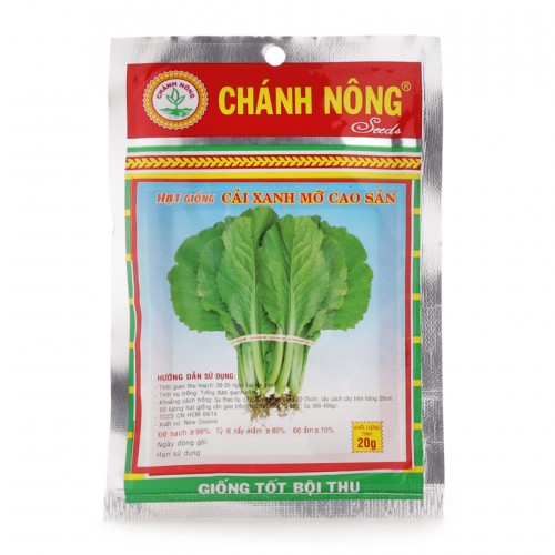 - Hạt giống cải xanh mỡ cao sản Chánh Nông 20g được chọn lọc kỹ lưỡng, có khả năng kháng bệnh rất cao. Đồng thời, sản phẩm có độ sạch trên 98%, giúp người dùng có thể gieo trồng dễ dàng.