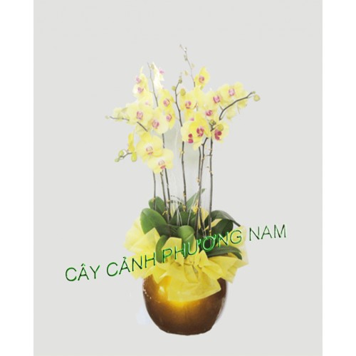 Lan hồ điệp có nhiều hình dáng và kích cỡ. Người trồng có thể đặt cây vào chậu riêng hoặc bỏ nhiều cây chung vào một chậu. Chậu thông thường có thể chứa được nhiều cây và cây có thể ra hoa trong vòng hai năm nếu được chăm sóc hợp lý.