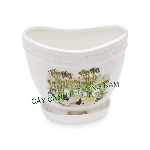 - Chậu có kiểu dáng oval cùng đĩa lót tiện lợi với hình ảnh rừng trúc xanh ngắt bên cạnh các chú gấu panda đáng yêu, màu sắc sang trọng, tinh tế sẽ tạo nét thẩm mỹ cho không gian sống nhà bạn.