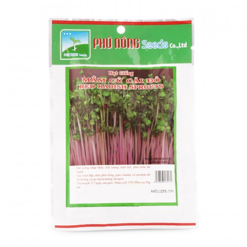 - Hạt giống mầm củ cải đỏ Phú Nông 30g được chọn lọc kỹ lưỡng, có khả năng kháng bệnh rất cao. Đồng thời, sản phẩm có độ sạch trên 98%, giúp người dùng có thể gieo trồng dễ dàng.
