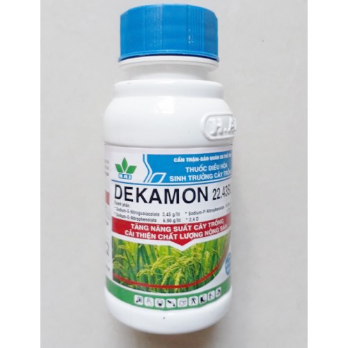 Mô tả: Chất điều hòa sinh trưởng Dekamon được sản xuất từ hợp chất tiến tiến. Sản phẩm được dùng để kích thích sự nẩy mầm của hạt, kích thích sự phát triển của chồi và lá. Bên cạnh đó, Chất điều hòa sinh trưởng Dekamon giúp cây sinh trưởng tốt, tăng khả năng chống chịu với điều kiện bất lợi, kích thích ra hoa và phát triển hoa đồng loạt.